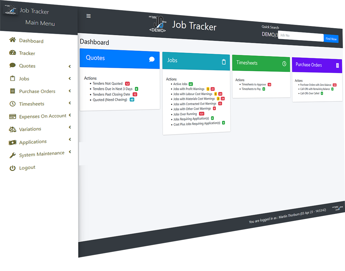 If you would like a one-to-one demonstration of the Job Tracker, please complete the form below and we´ll contact you to arrange a suitable date and time, or contact us by email at info@jobcop.co.uk.
